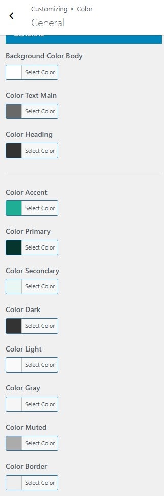 - In Dashboard Admin, Navigate to: Appearance » Customize » Color » General