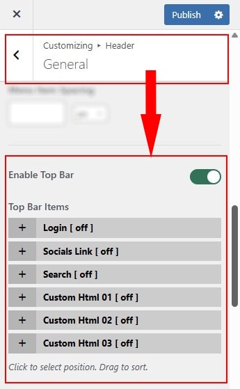 - In Dashboard Admin, Navigate to: Appearance » Customize » Header » General