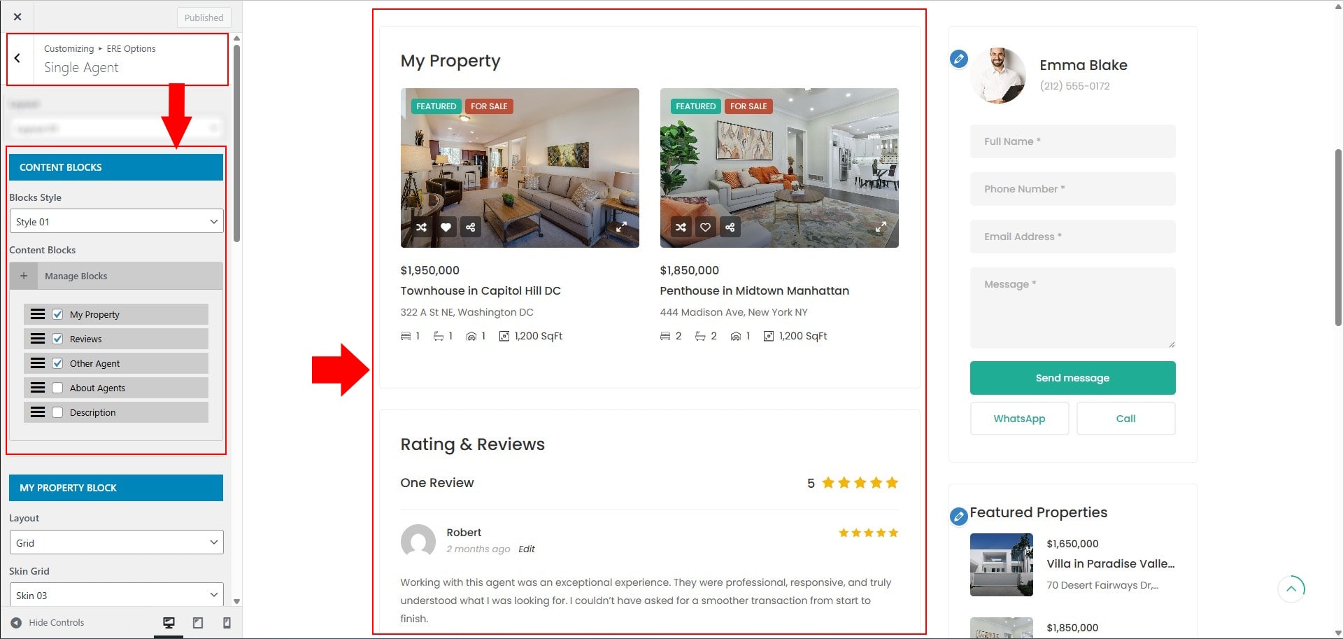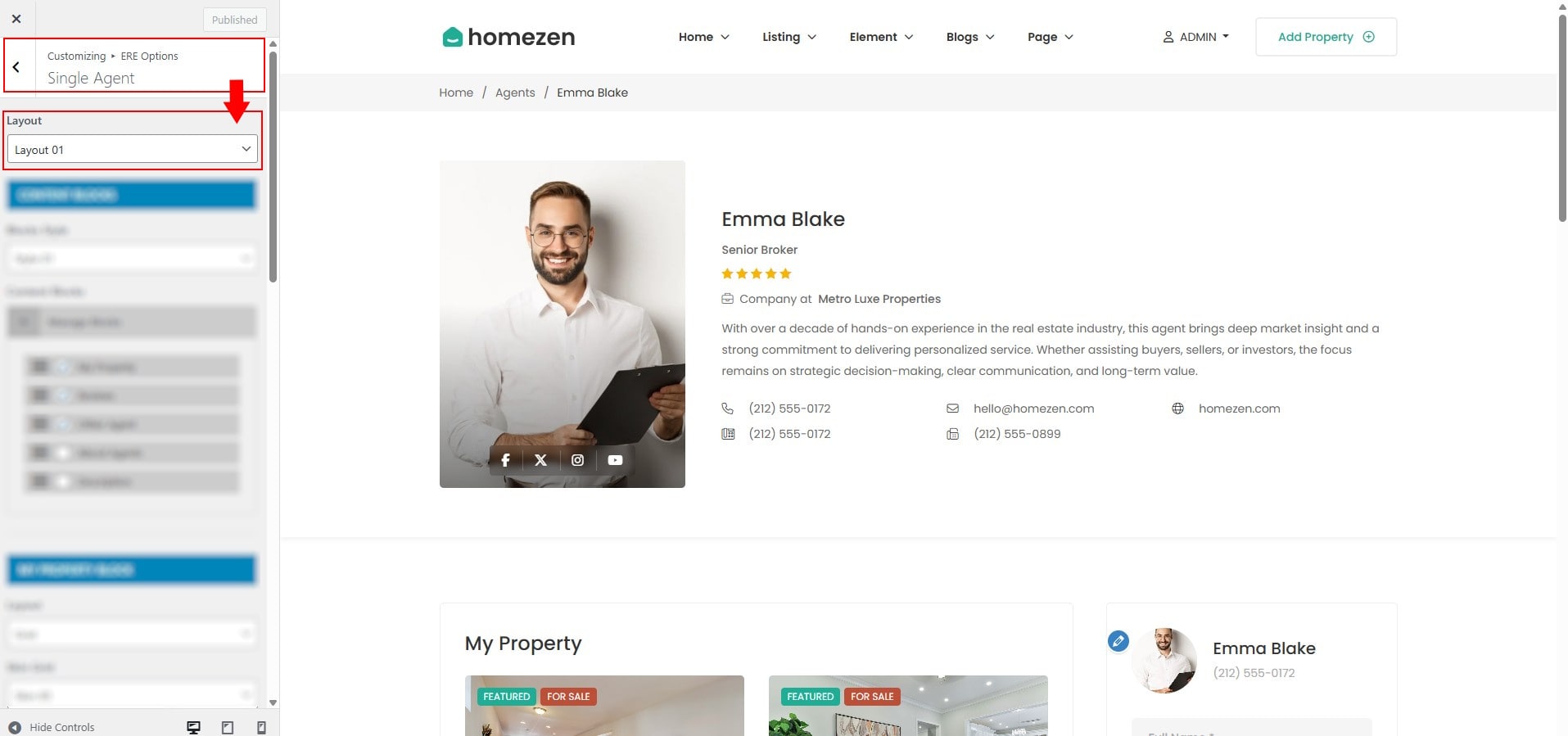 - In Dashboard Admin, Navigate to: Appearance » Customize » ERE Options » Single Agent